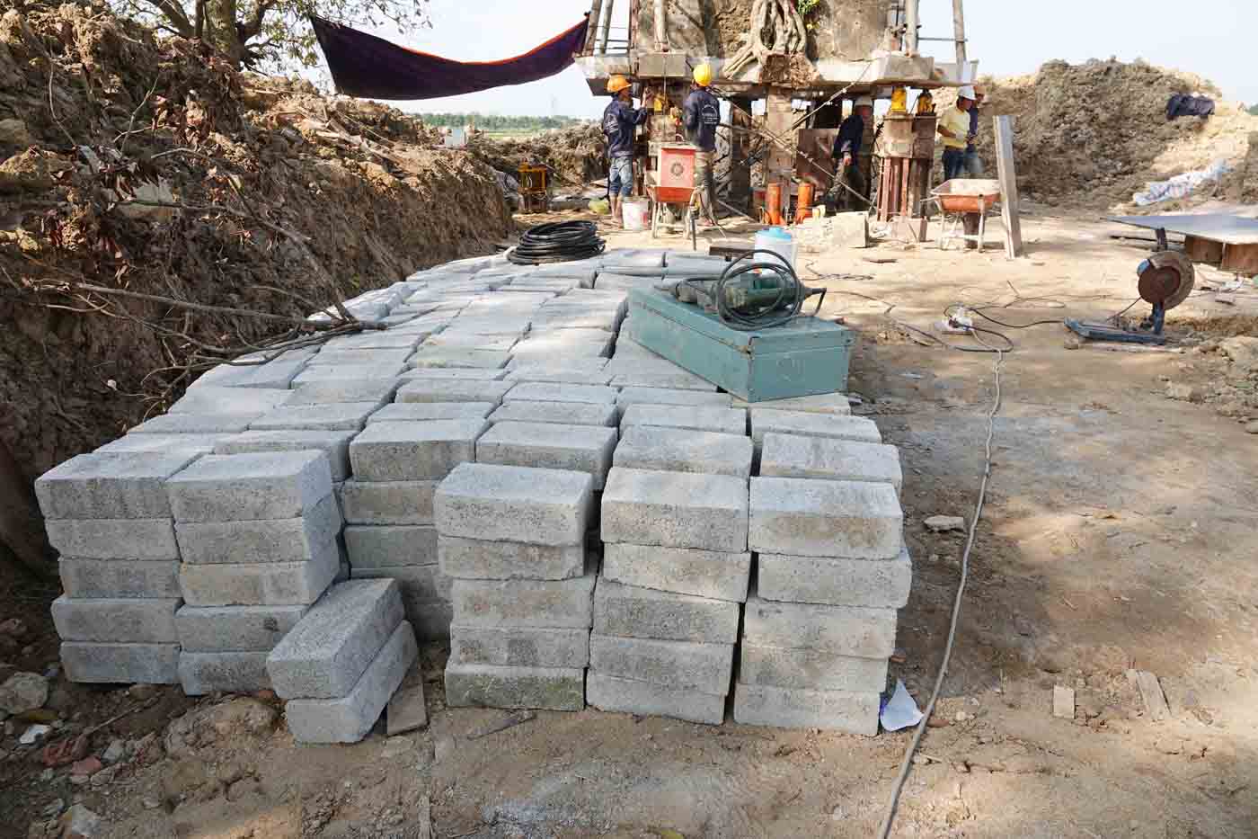 Hiện việc đổ trụ bê tông và xây tường bao phần nâng trụ dự kiến cần thêm vài ngày nữa là sẽ bàn giao cho chủ đầu tư.